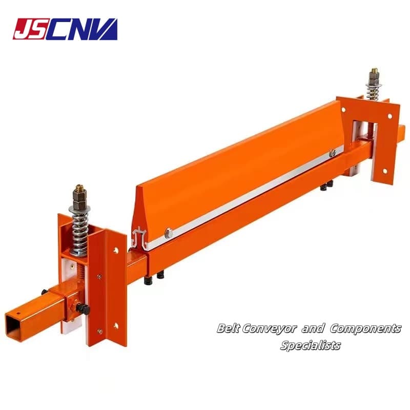 વન-લાઇન ક્લીનર રીટર્ન બેલ્ટની સફાઈ માટે છે. તેનો ઉપયોગ મુખ્યત્વે પાછળની બેન્ડ પુલીની સામે અને બેલ્ટ કન્વેયરના ભારે વર્ટિકલ ટેન્શનિંગ ડિવાઇસની સામે થાય છે. તેનો ઉપયોગ ખાસ કરીને ટુ-વે રનિંગ બેલ્ટના ખાલી વિભાગને સાફ કરવા માટે થઈ શકે છે. તે એસિડ અને આલ્કલી પ્રતિકાર, જ્યોત રેટાડન્ટ અને એન્ટિસ્ટેટિક, ઉચ્ચ વસ્ત્રો પ્રતિકારની લાક્ષણિકતાઓ ધરાવે છે અને પટ્ટાને નુકસાન કરતું નથી. બ્લેડ ઉચ્ચ-શક્તિવાળા પોલીયુરેથીનથી બનેલી છે, V-આકારની ડિઝાઇન બેલ્ટની સ્વચ્છતાને સુનિશ્ચિત કરે છે, અને આપોઆપ ગુરુત્વાકર્ષણ ડિઝાઇન જ્યારે બ્લેડ ખસી જાય ત્યારે આપોઆપ વળતરની ખાતરી આપે છે.
