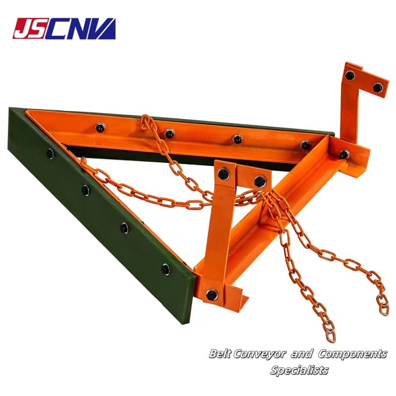 વી-પ્લો બેલ્ટ ક્લીનર એ રીટર્ન બેલ્ટ ક્લીનરનો એક પ્રકાર છે. તેનો ઉપયોગ મુખ્યત્વે બેલ્ટ કન્વેયરની કન્વેયર બેન્ડ પુલીની સામે અને ભારે વર્ટિકલ ટેન્શનિંગ ડિવાઇસની સામે થાય છે. તે એસિડ અને આલ્કલી પ્રતિકાર, જ્યોત રેટાડન્ટ અને એન્ટિસ્ટેટિક, ઉચ્ચ વસ્ત્રો પ્રતિકારની લાક્ષણિકતાઓ ધરાવે છે અને પટ્ટાને નુકસાન કરતું નથી. બ્લેડ ઉચ્ચ-શક્તિવાળા પોલીયુરેથીનથી બનેલી છે, V-આકારની ડિઝાઇન બેલ્ટની સ્વચ્છતાને સુનિશ્ચિત કરે છે, અને આપોઆપ ગુરુત્વાકર્ષણ ડિઝાઇન જ્યારે બ્લેડ ખસી જાય ત્યારે આપોઆપ વળતરની ખાતરી આપે છે.